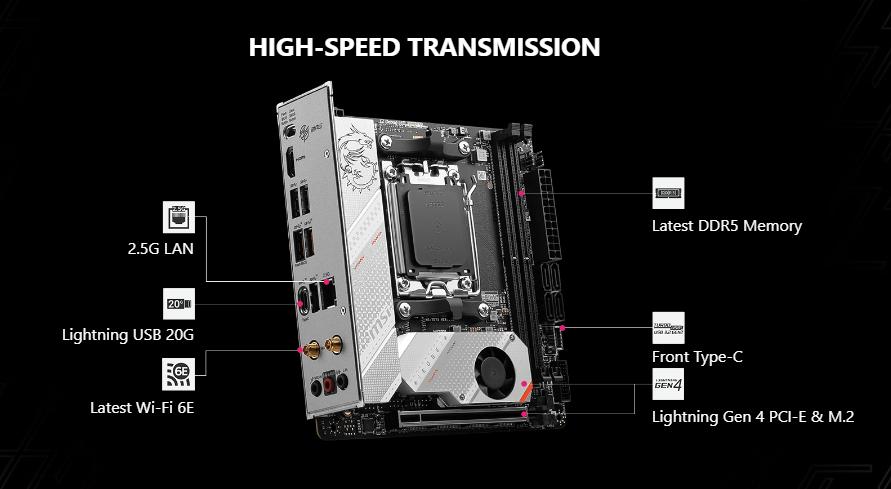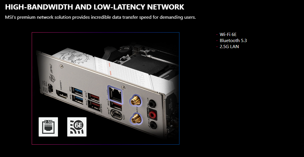 2.5G LAN and AMD Wi-Fi 6E Solution: Upgraded network solution for professional and multimedia use. Delivers a secure, stable and fast network connection