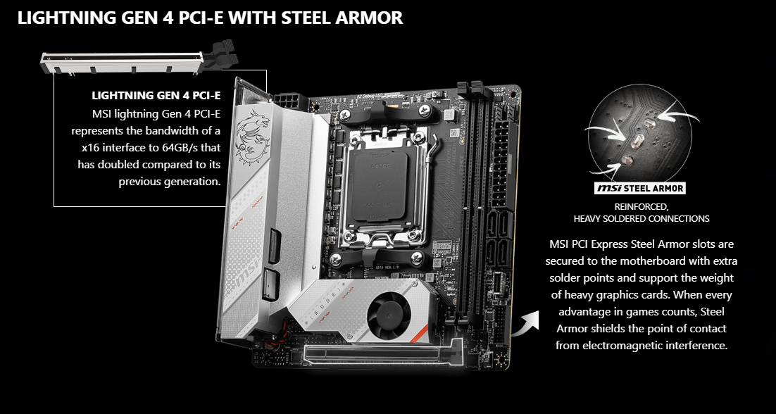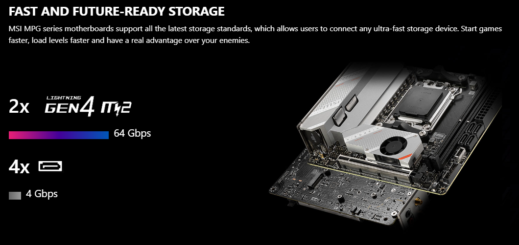 Lightning Fast Game experience: PCIe 4.0 slots, Lightning Gen 4 x4 M.2, USB 3.2 Gen 2×2