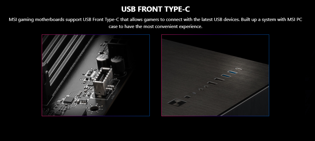 2x USB 5Gbps Type A (Rear) 2x USB 5Gbps Type A (Front) 3x USB 10Gbps Type A (Rear) 1x USB 10Gbps Type C (Front) 1x USB 20Gbps Type C (Rear)
