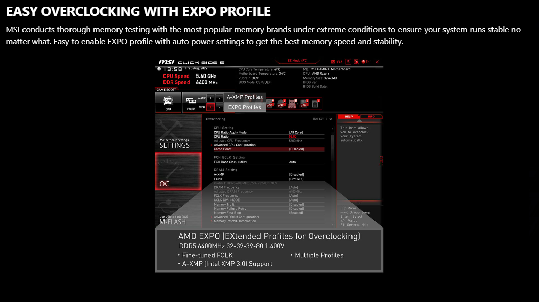 Supports Dual-Channel mode Supports non-ECC, un-buffered memory Supports AMD EXPO™