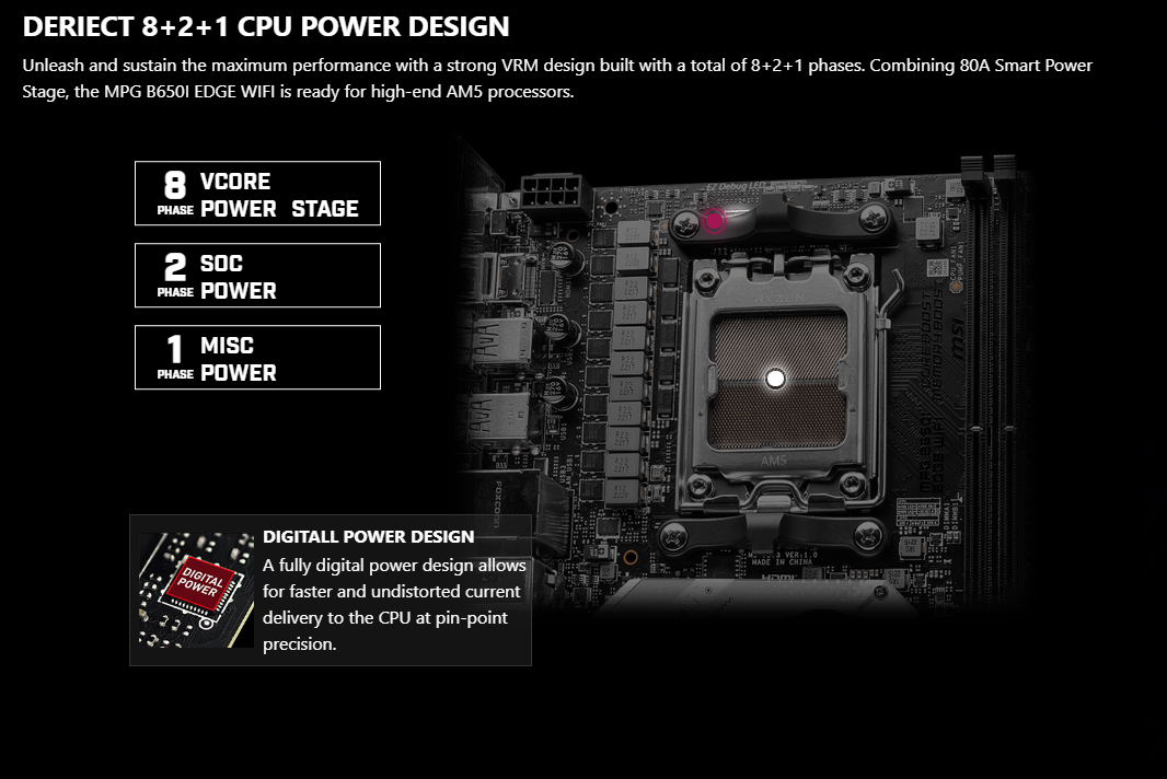 | CPU | Supports AMD Ryzen™ 9000/ 8000/ 7000 Series Desktop Processors