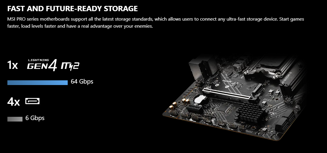 Lightning Fast Game experience: PCIe 4.0 slot, Lightning Gen 4 x4 M.2