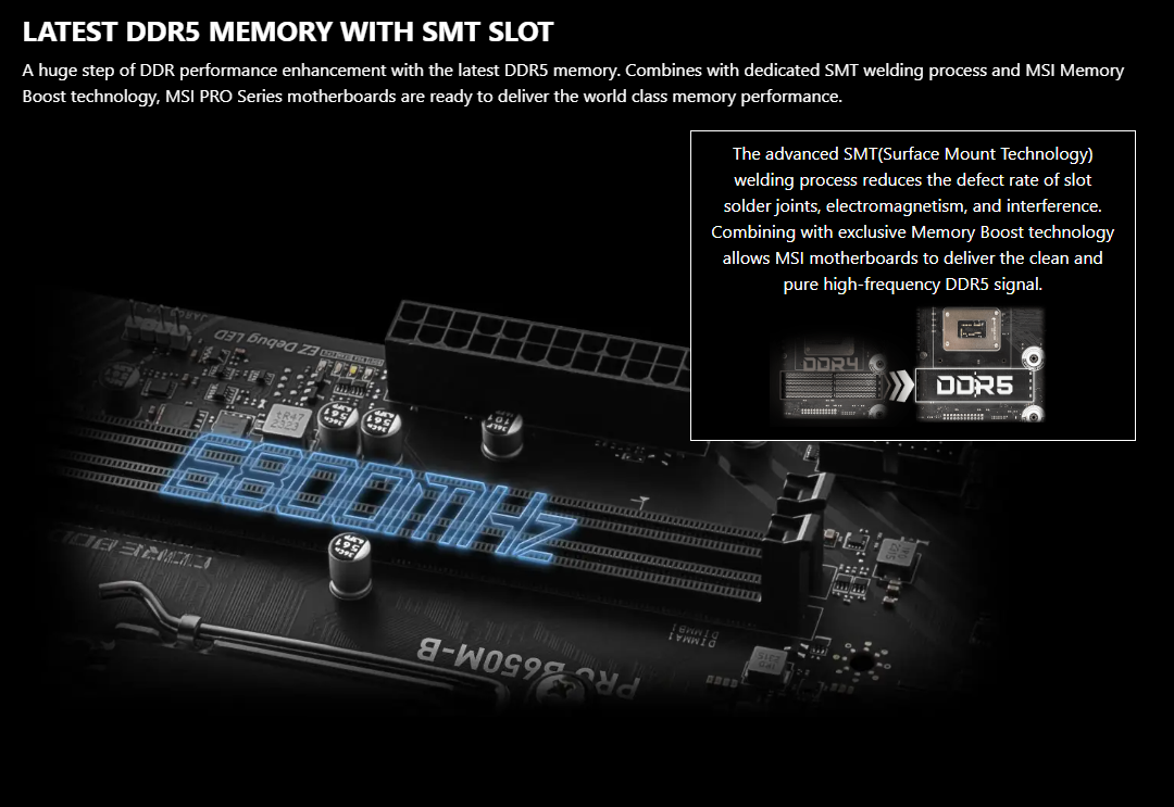 Supports DDR5 Memory, Dual Channel DDR5 6800+MHz (OC)