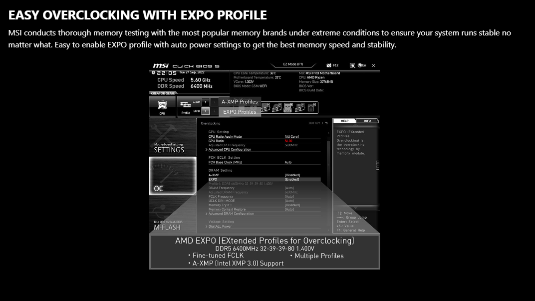 Supports Dual-Channel mode Supports non-ECC, un-buffered memory Supports AMD EXPO