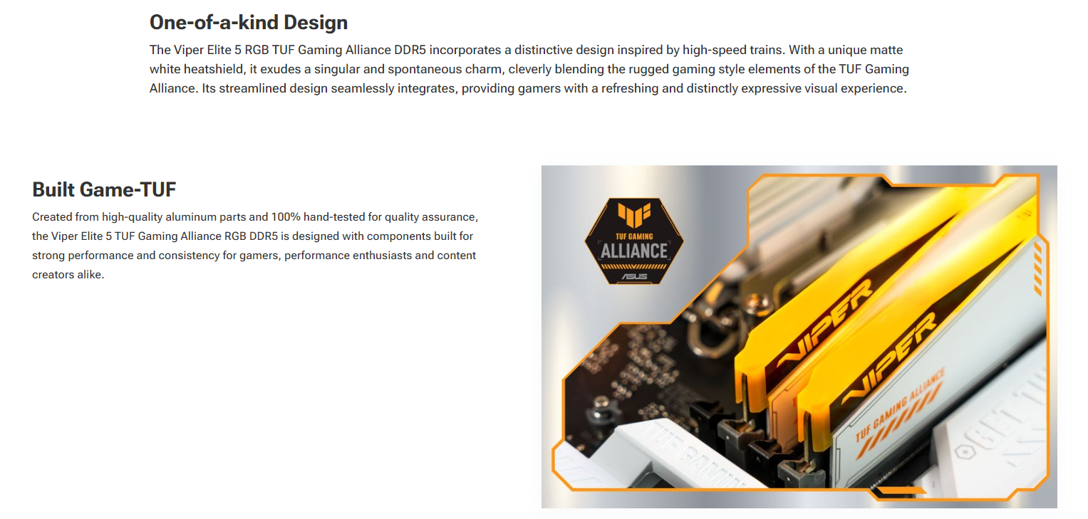 Viper Elite 5 RGB TUF Gaming Alliance Performance DDR5 Memory