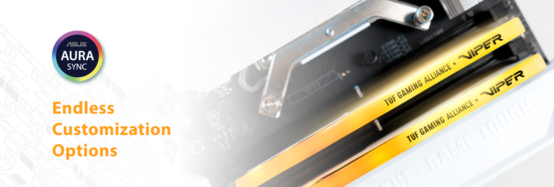 The Viper Elite 5 TUF Gaming Alliance DDR5’s unique RGB lightbar allows for endless customization options paired with a white headshield to stand out among other performance memory. With our exclusive Viper RGB Sync App, you can easily pair lighting effects with other devices for one fully immersive system.