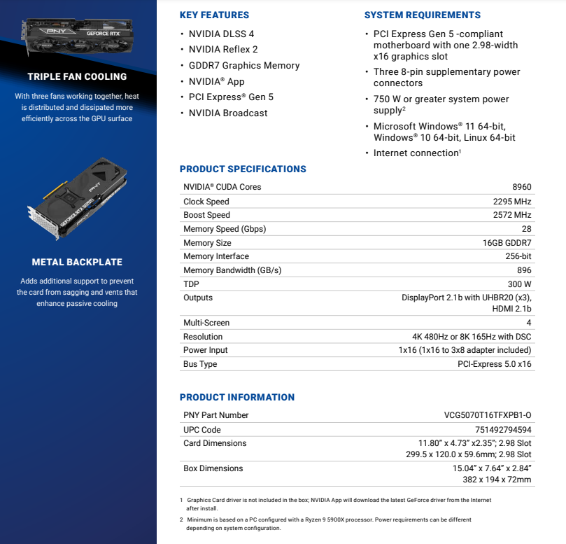 PNY GeForce RTX™ 5070 Ti Overclocked Triple Fan GPU