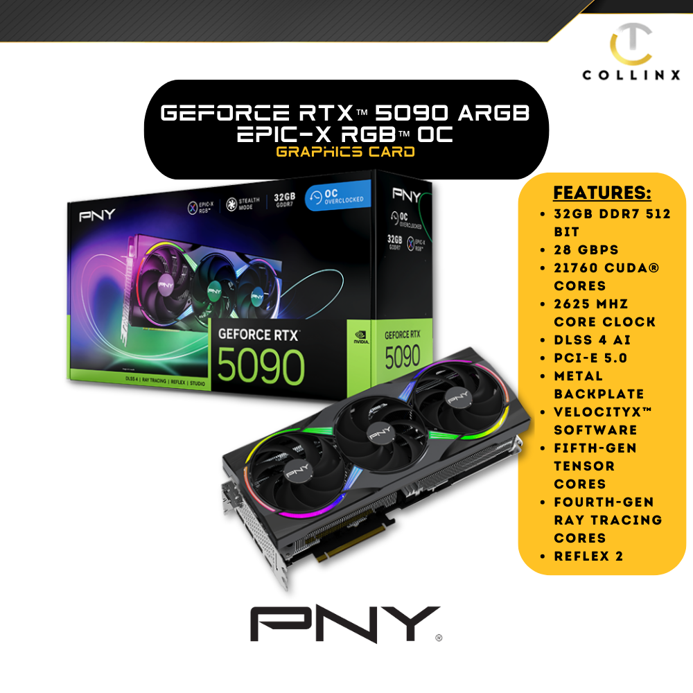 PNY GeForce RTX 5090 ARGB EPIC-X RGB OC Triple Fan 32 GB GDDR7 Graphics Card