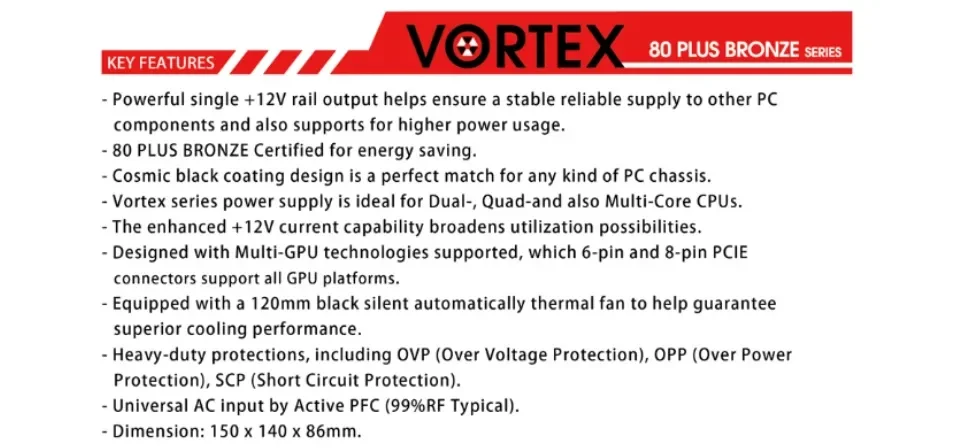 Vortex series power supply is ideal for Dual-, Qua d-and al so Multi-Core CPUs.