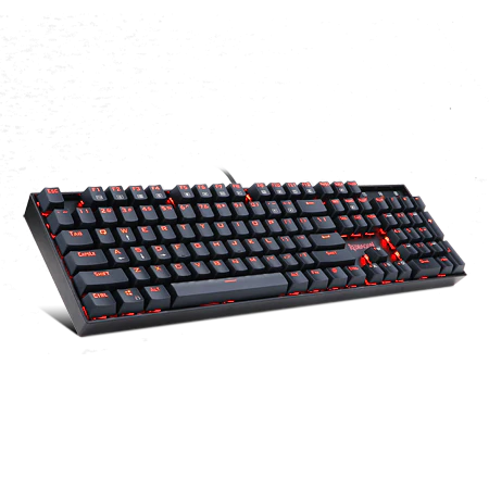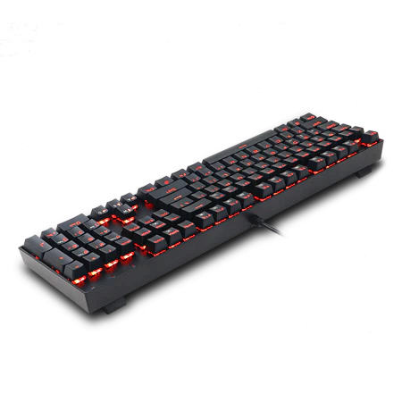RED LED BACKLIT KEYBOARD The Redragon K551 keyboard comes with RED LED backlighting for all 104 keys and 10 user adjustable brightness levels. The Double-shot injection moulded keycaps offer crystal clear uniform backlighting and lettering that doesn’t scratch off. Furthermore, the keyboard features: