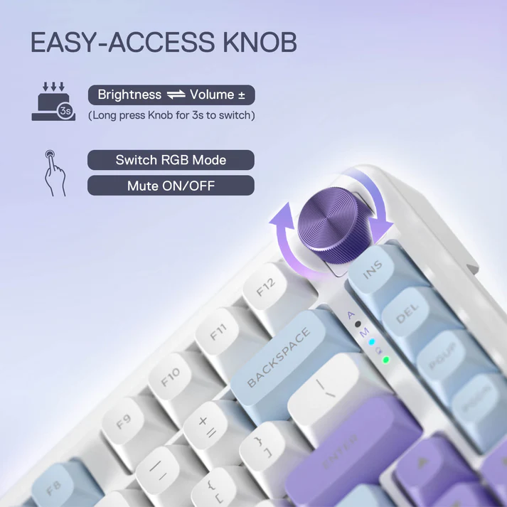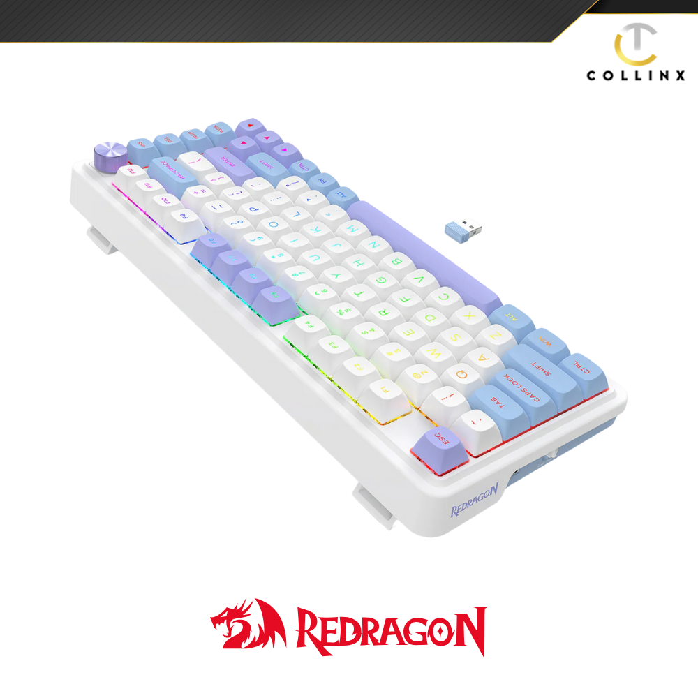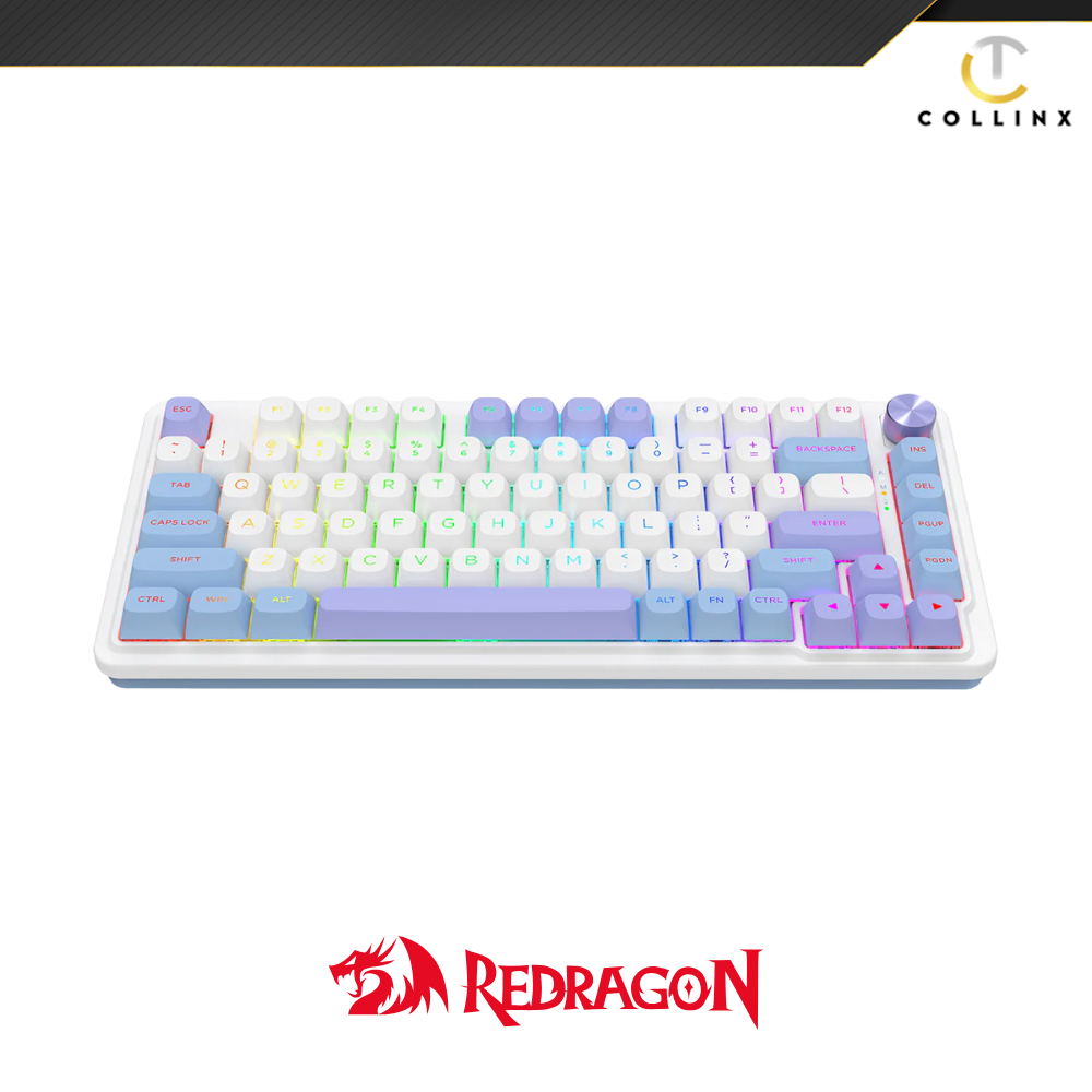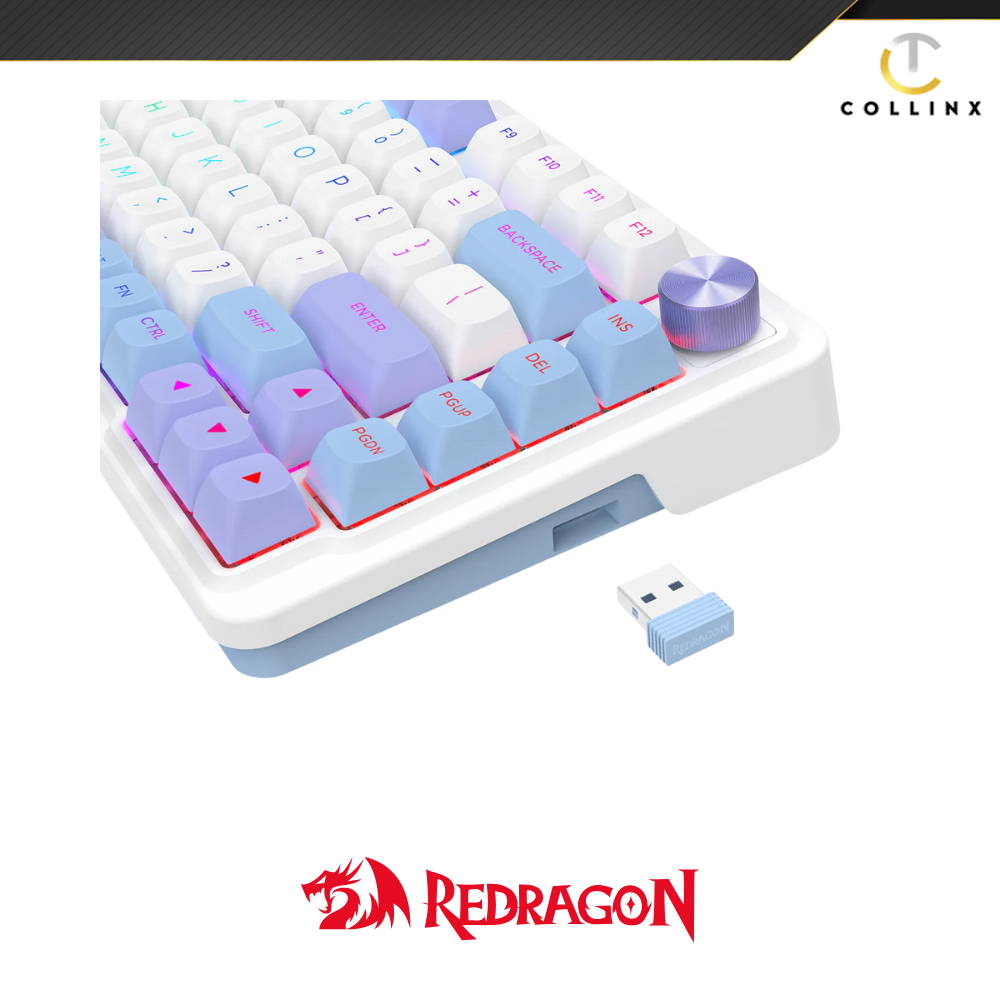 Redragon K673WBP RGB Ucal Max 81-Key 75% Gasket-Mounted Hot-Swappable Wireless Mechanical Keyboard with Knob (Mint Mambo Switch) (Moonrise Violet)