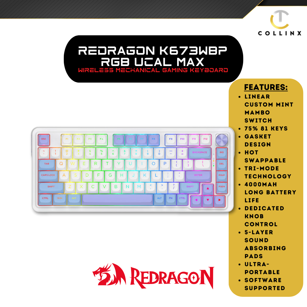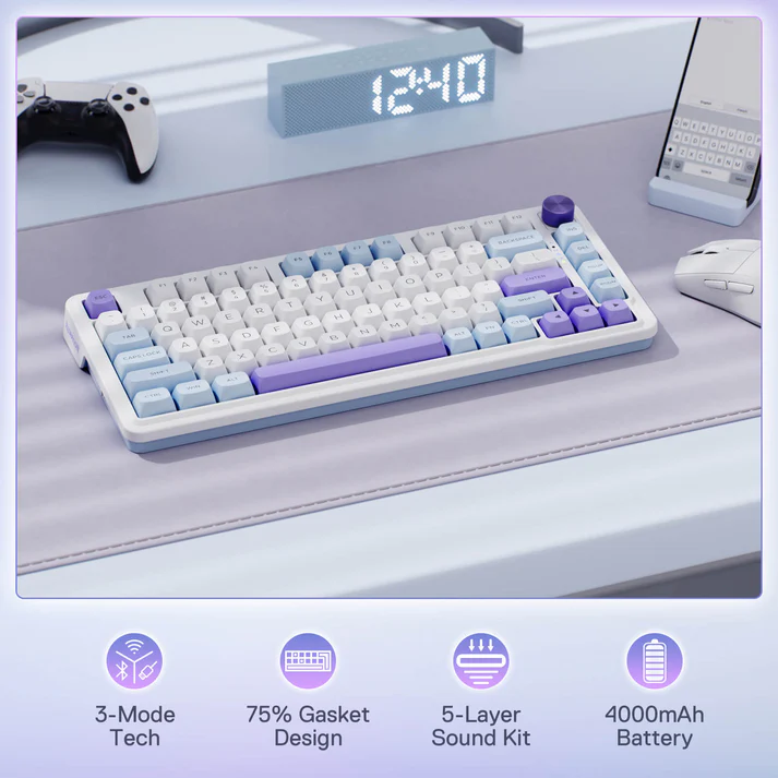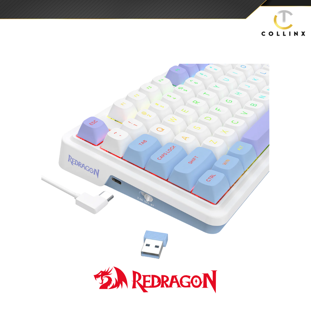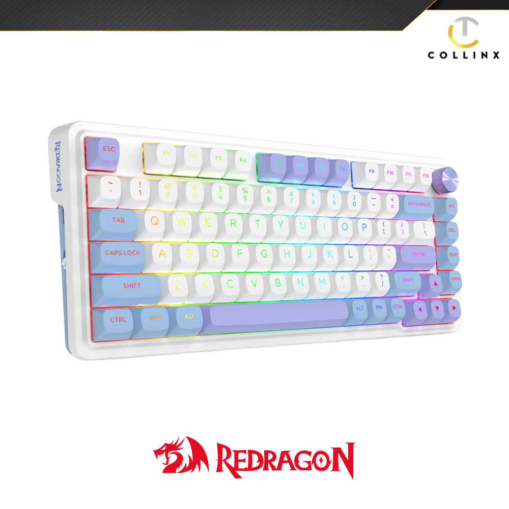 Redragon K673WBP RGB Ucal Max 81-Key 75% Gasket-Mounted Hot-Swappable Wireless Mechanical Keyboard with Knob (Mint Mambo Switch) (Moonrise Violet)