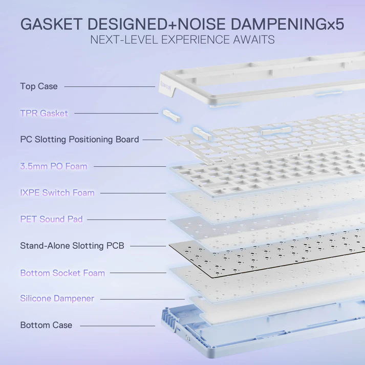 Redragon wireless 75% Gasket mounted, hot-swappablewireless mechanical keyboard with knob