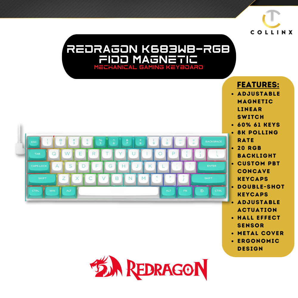 Redragon K683WB-RGB Fidd 8k Wired Rapid Trigger Magnetic Switch Keyboard (AQUA/WHITE)