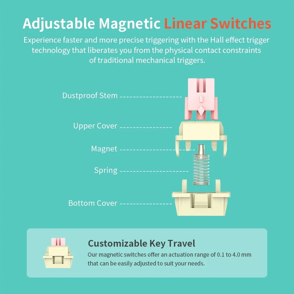 Rapid trigger available with dynamic activation and deactivation of keys based on travel distance 0.1mm to 4.0mm