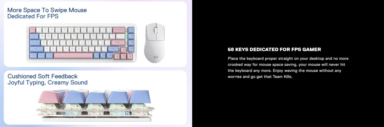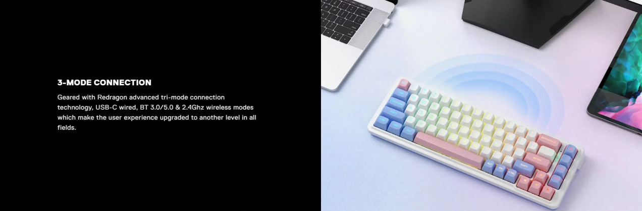 Redragon wired/2.4G/BT hot-swappable gasket mounted mechanical keyboard, cutomised Pre-lubricated linear switch, 6096 layout with RGB backlight