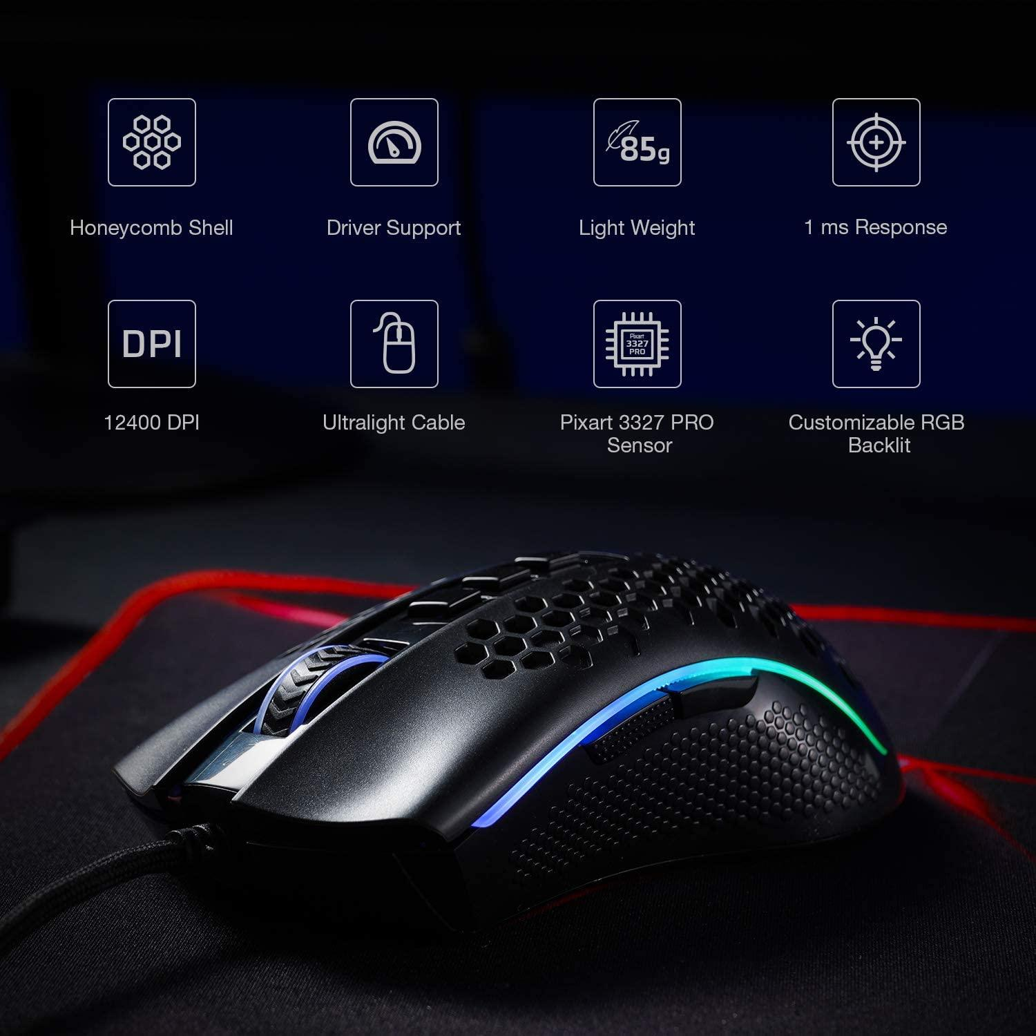 Years-Tested Ultralight -85g, the lightest mouse of Redragon with over the years using preference testing that fits perfectly for any hands and any tasks. A single click or swipe, totally in your control.