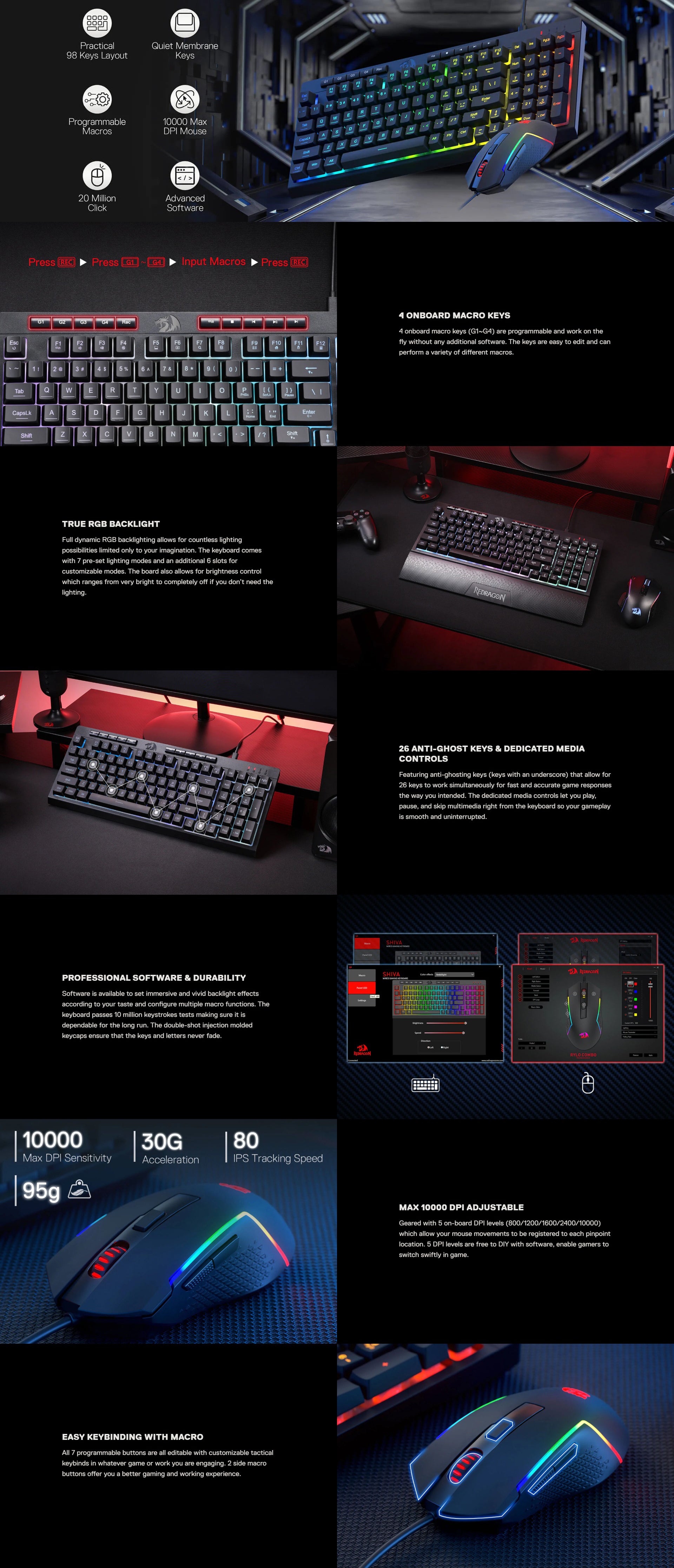 4 onboard macro keys (G1~G4) are programmable and work on the fly without any additional software. The keys are easy to edit and can perform a variety of different macros.
