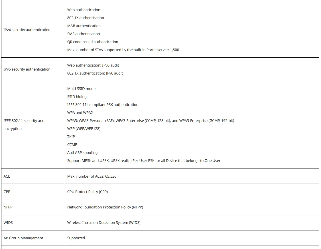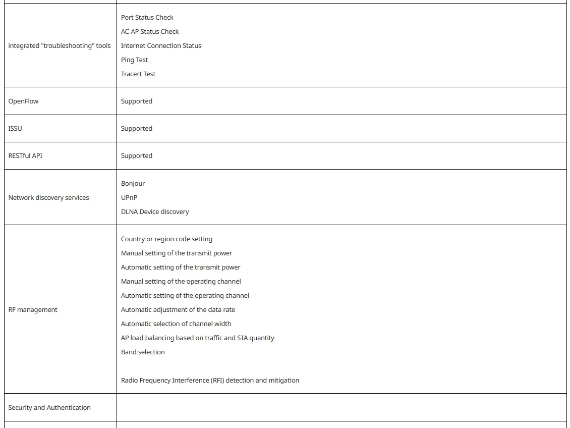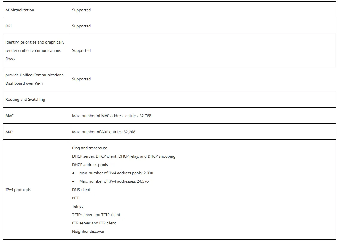 * 802.11 forwarding capacity: 1.58 Gbps (subject to the wireless network environment)