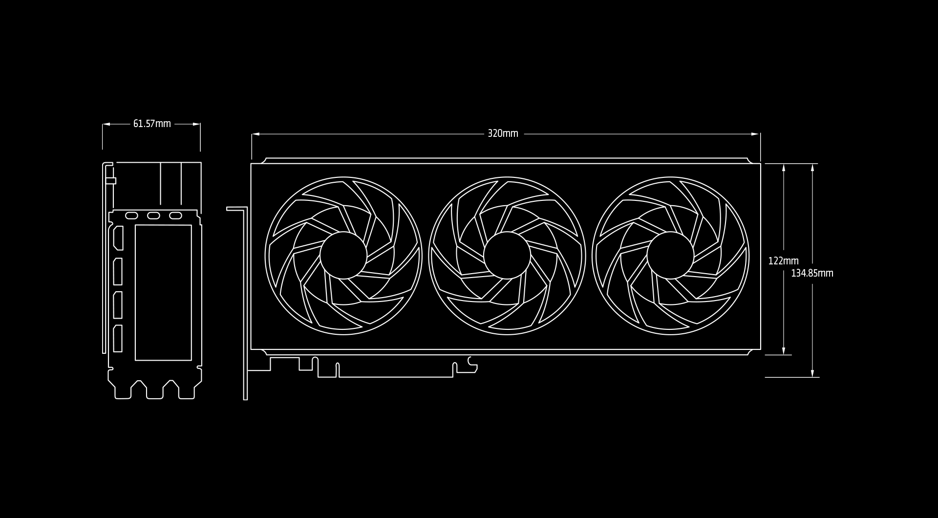 3 slot, ATX Dimension: 320(L)X 134.85(W)X 61.57 (H)mm