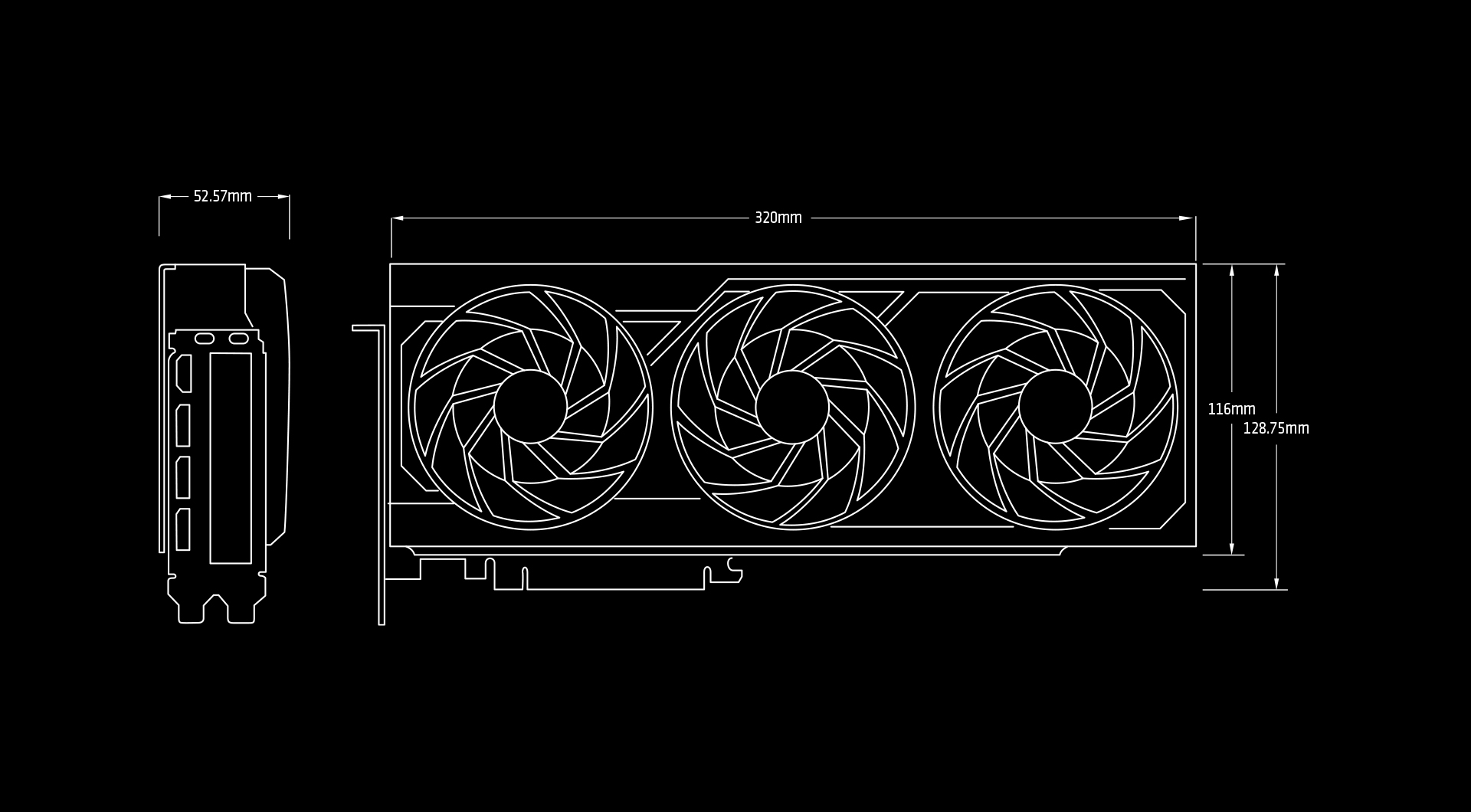 2.5 slot, ATX Dimension: 320(L)X 128.75(W)X 52.57 (H)mm