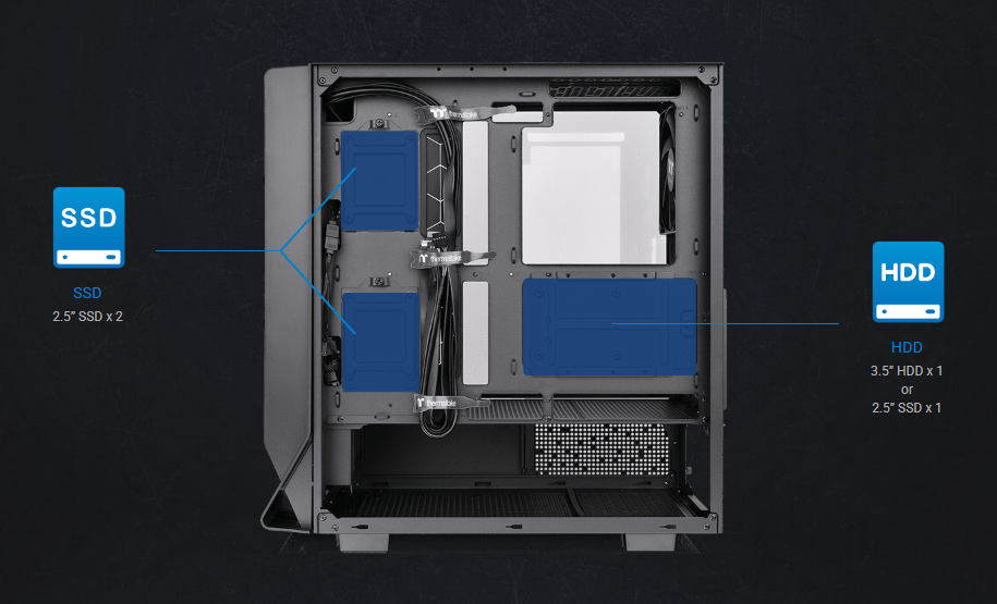 | Drive Bays | 1 x 3.5”, 2 x 2.5’’ or 3 x 2.5”