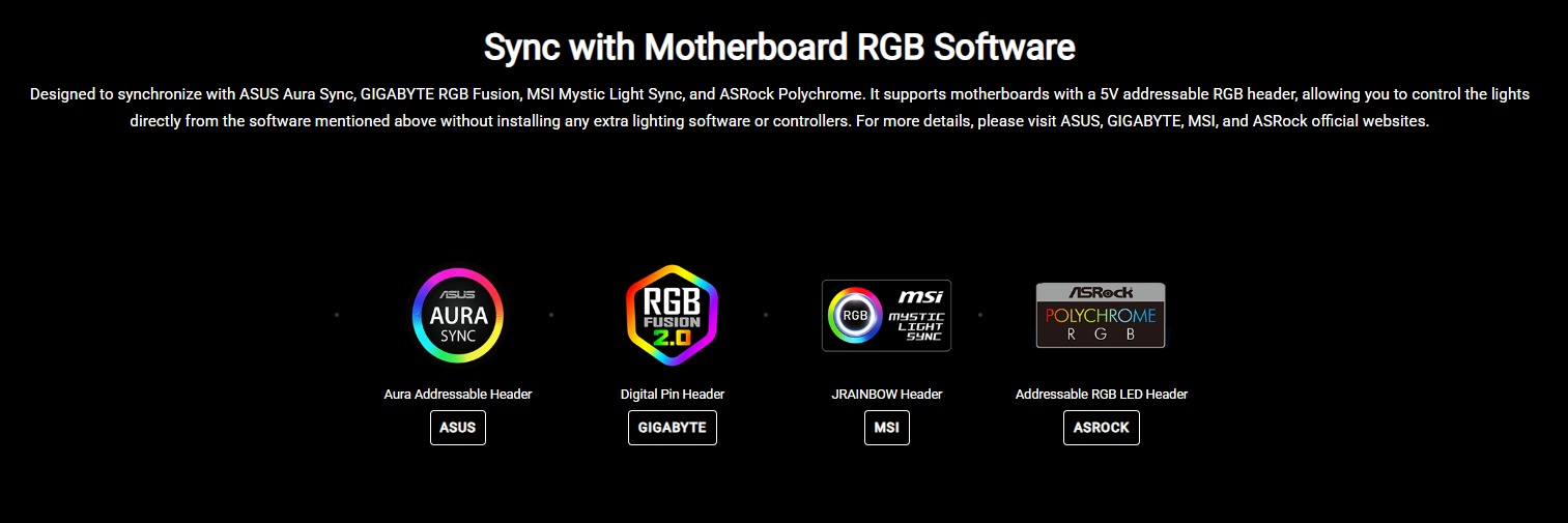 200 x 200 x 30mm Addressable RGB fan (600rpm, 24dBA) x 1 Rear (exhaust) : 120 x 120 x 25 mm fan (1000rpm, 16 dBA)