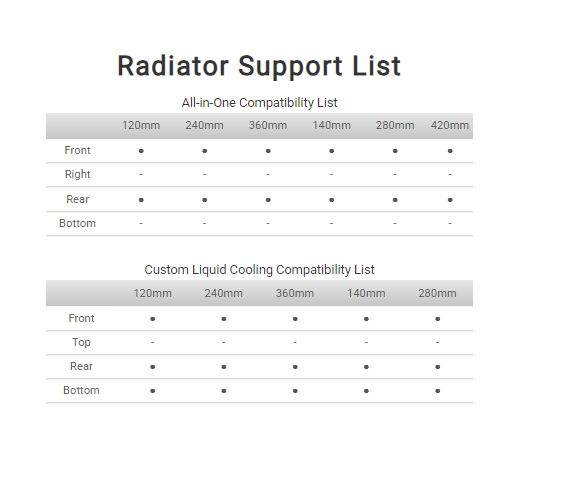 1 x 420mm(AIO only), 1 x 280mm, 1 x 140mm
