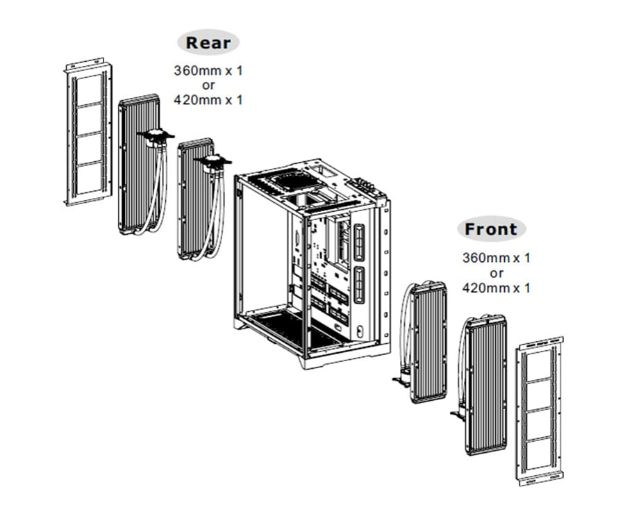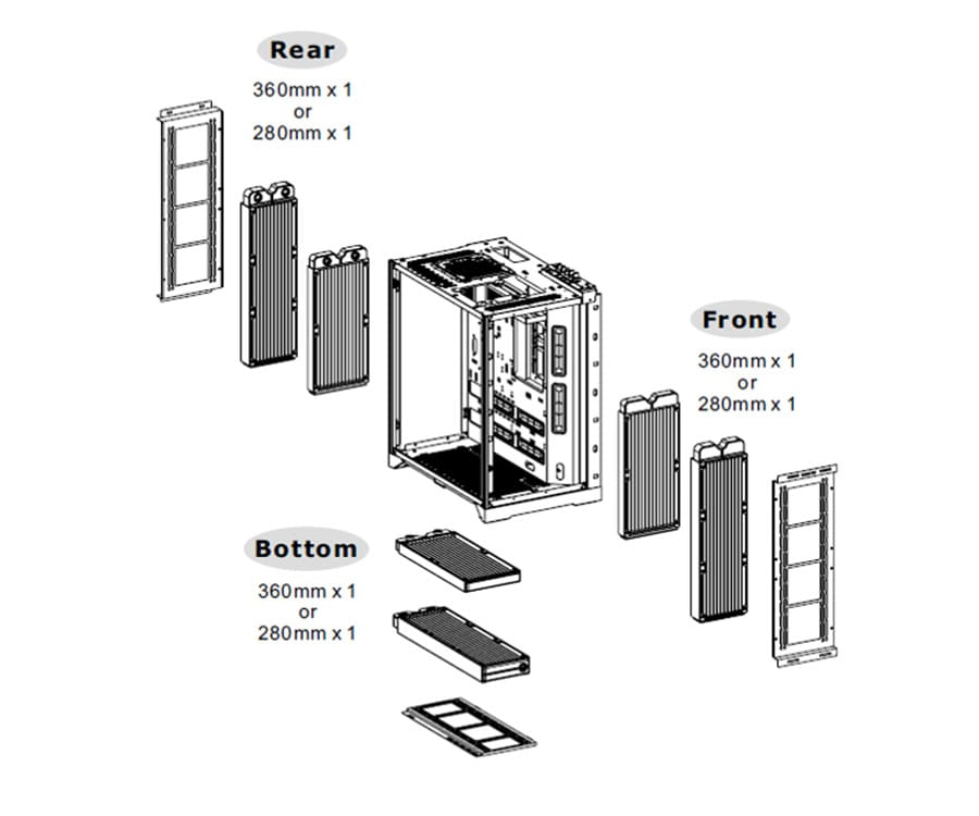 The CTE C700 offers multiple mounting locations and plenty of room to create your own configurations. DIY radiators up to 360mm in length can be installed on the front, rear and bottom, and for AIO compatibility, up to 420mm/360mm radiators can be installed on the front and rear, giving PC enthusiasts plenty of flexibility to create their ideal setup.