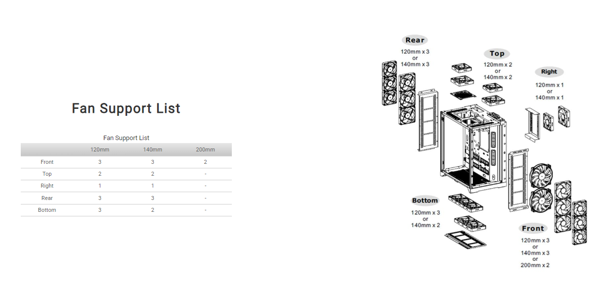 3 x 140mm, 2 x 140mm, 1 x 140mm