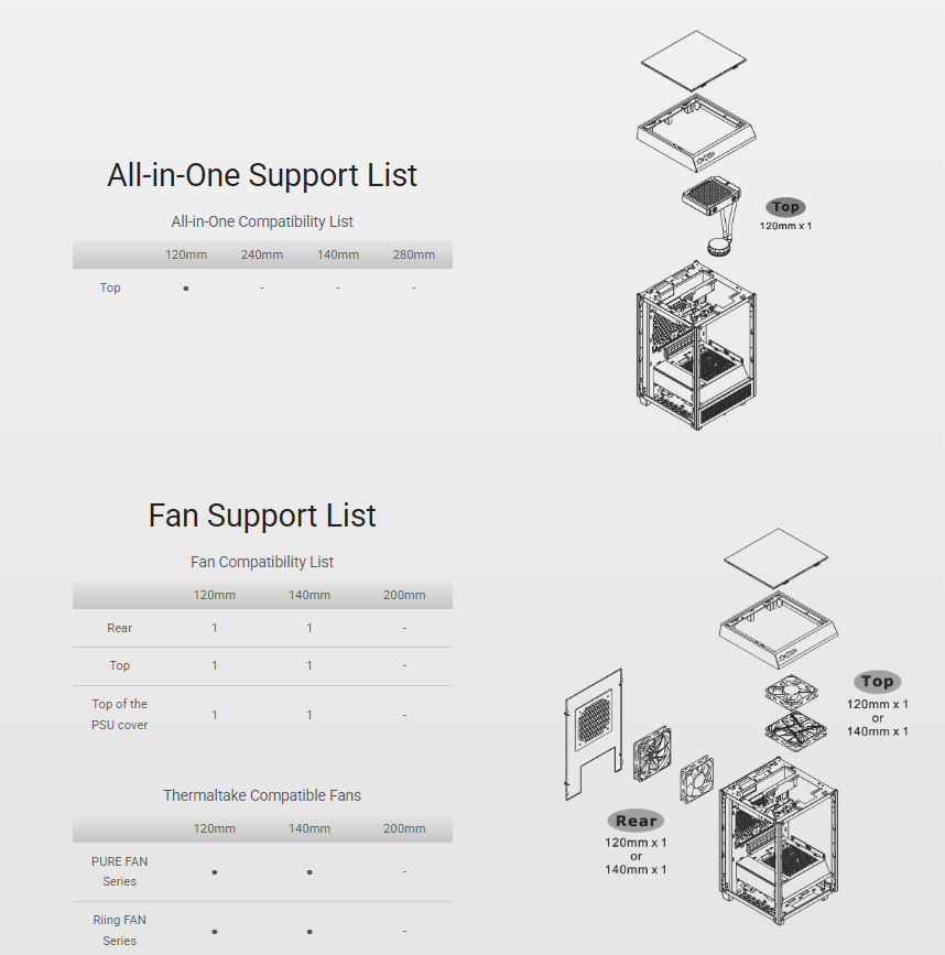 1 x 120mm, 1 x 140mm Rear: 1 x 120mm, 1 x 140mm Top of the PSU Cover: 1 x 120mm, 1 x 140mm