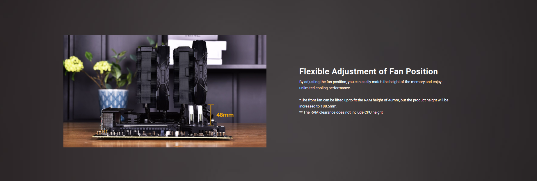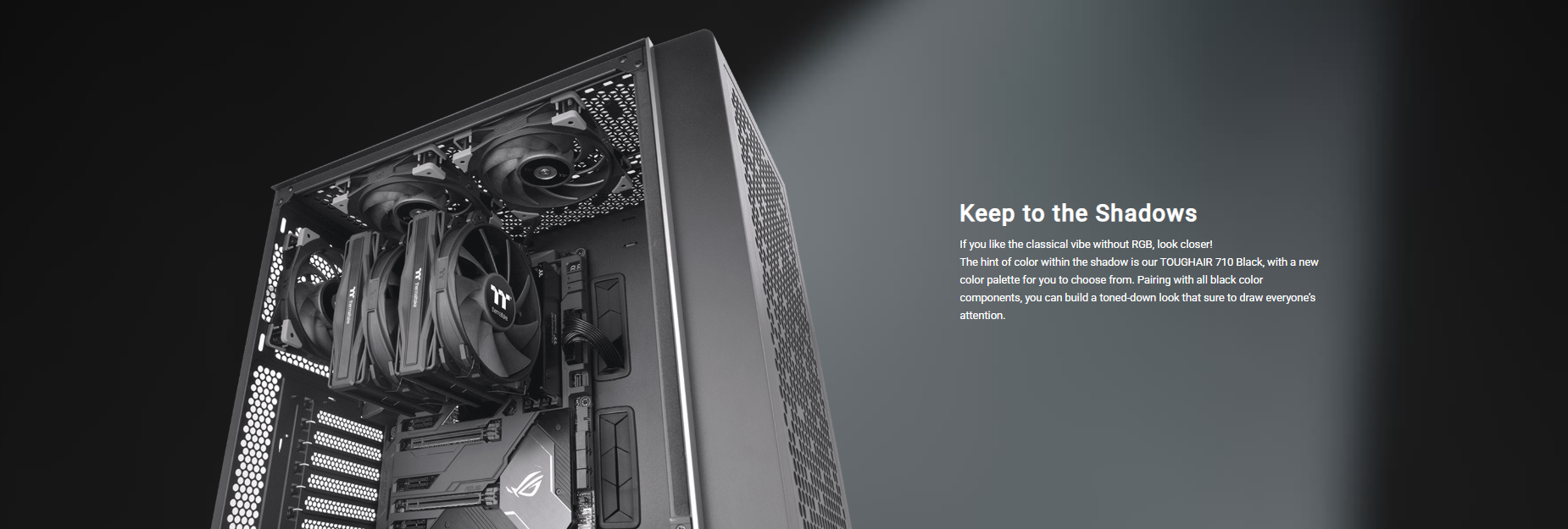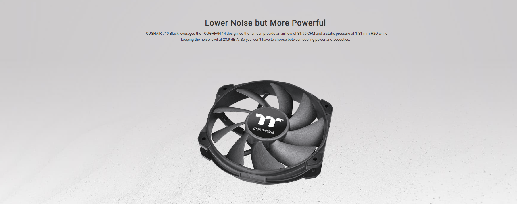 TOUGHAIR 710 Black is constructed with a Dual-Tower Dual Fan Design for the latest Intel and AMD CPUs, allowing the two 140mm fans to perform the best possible cooling and kicking the TOUGHAIR series up a notch for the latest CPUs.