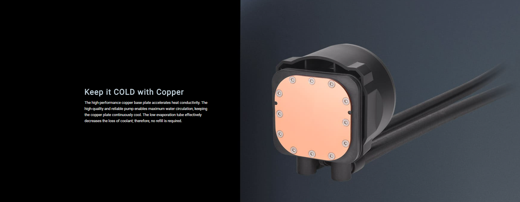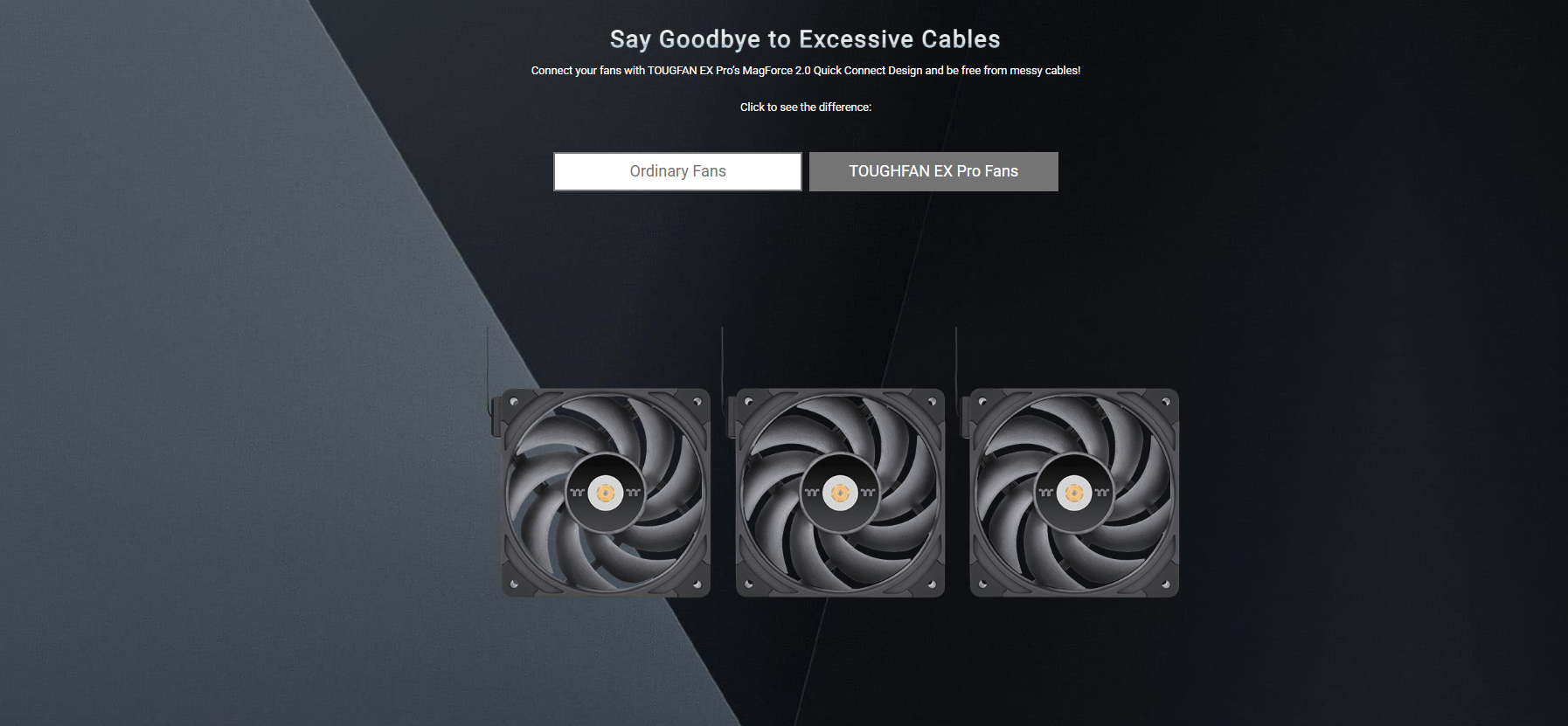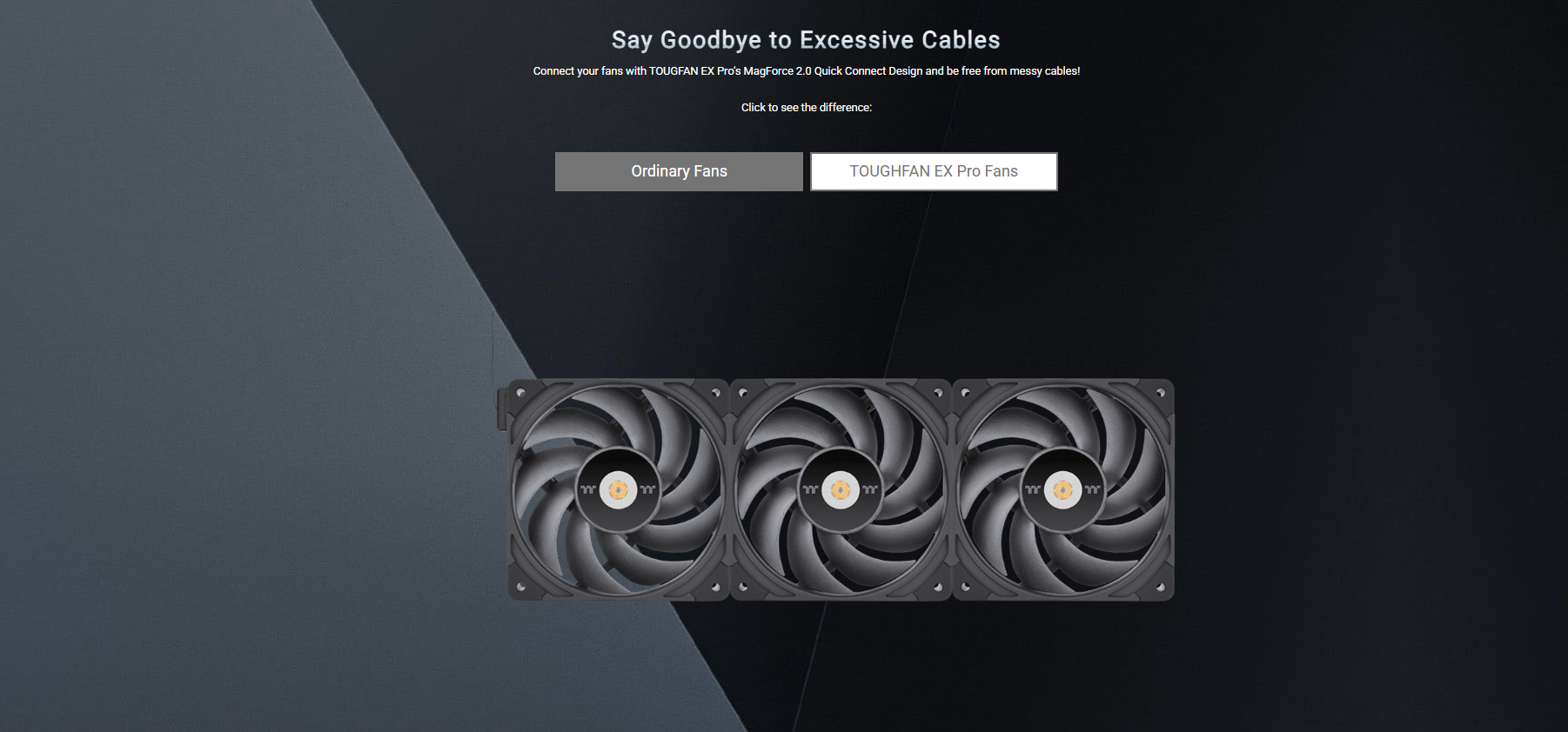 TOUGHLIQUID 240 EX Pro introduces a new all-black industrial cap with an infinity mirror light design, adding a fresh look to the TOUGHLIQUID series. The AIO is equipped with two high-performance TOUGHFAN EX12 Pro fans, the TOUGHLIQUID 240 EX Pro provides a better PC building experience with the new MagForce 2.0, allowing you to snap the fans together more quickly and ensures a steadier connection!