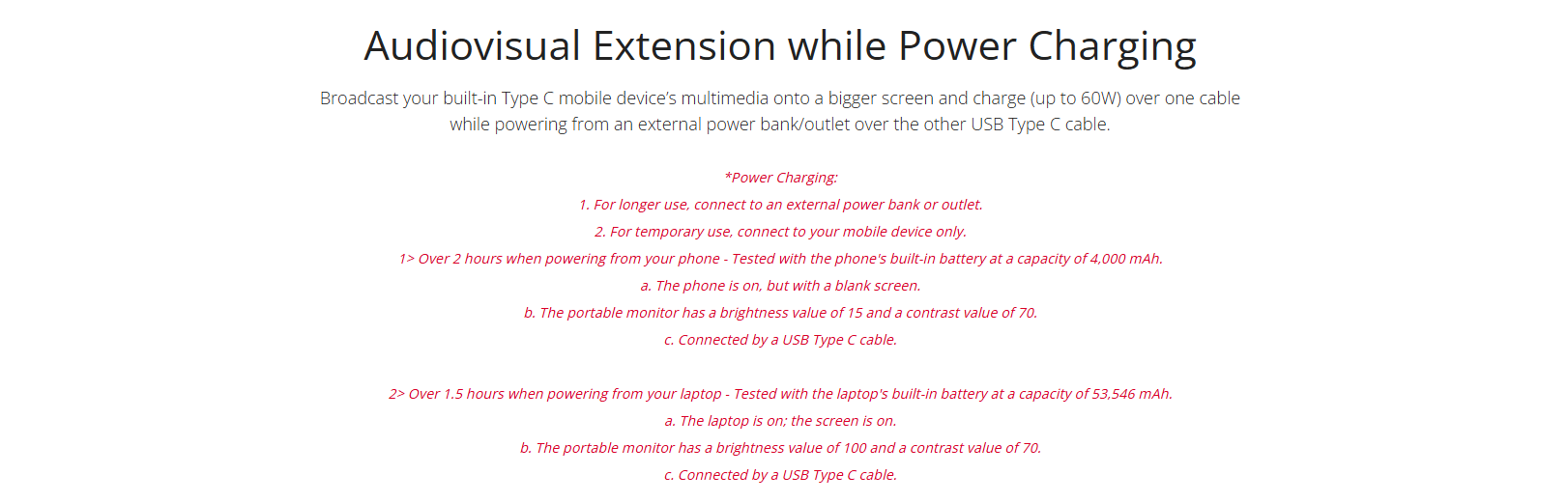 Extend your screen anywhere with your built-in USB Type C laptop, tablet, or phone. It supports Windows, Android, Chrome, MacOS, iOS and iPadOS*. Be sure your laptop, tablet, or smartphone has a full-function USB-C connector that supports Display Port 1.2 Alt Mode.