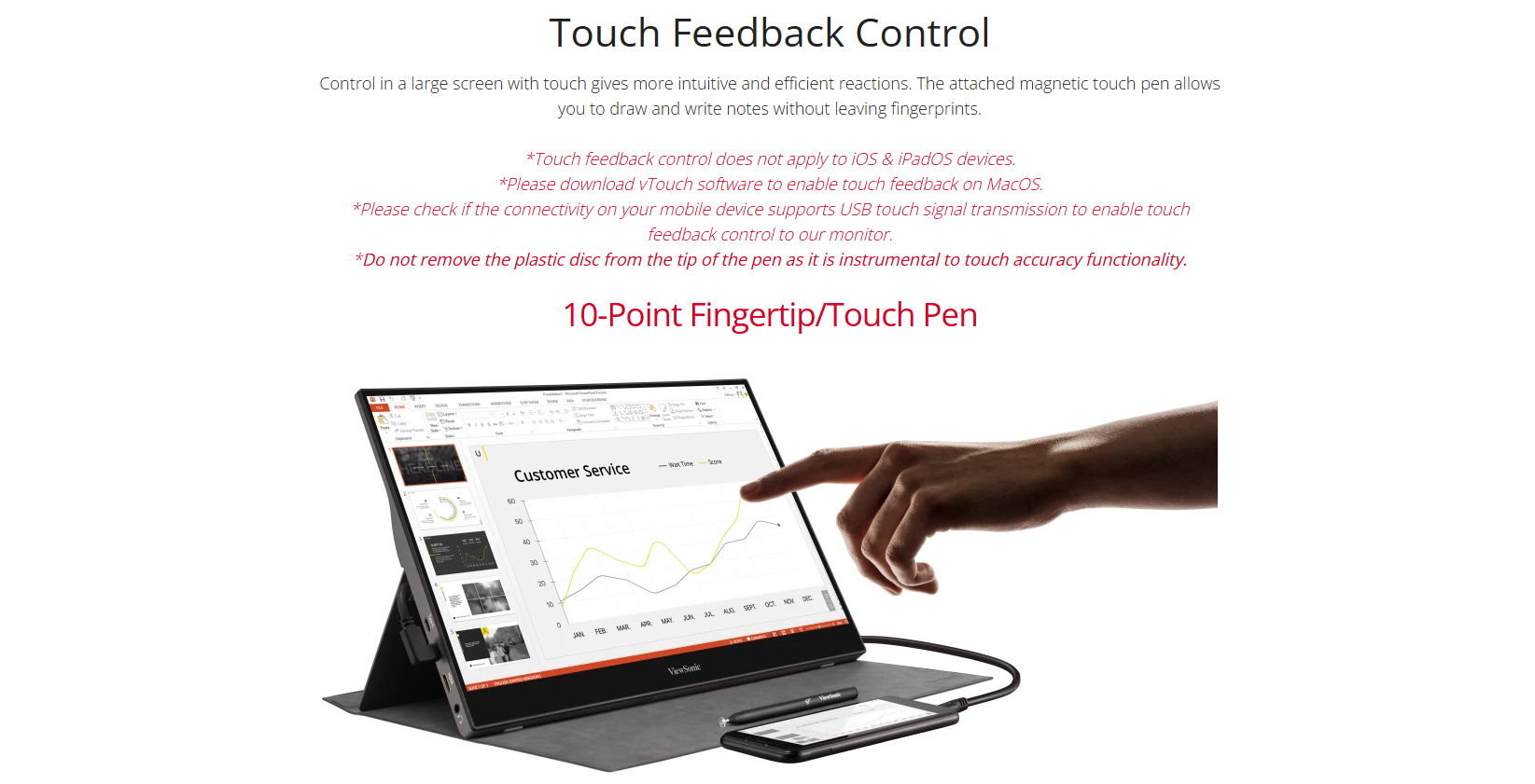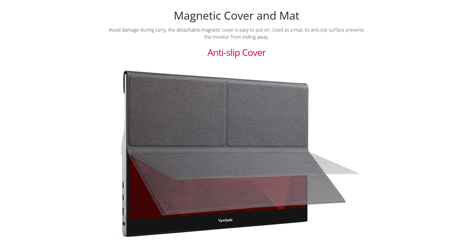 The ViewSonic TD1655 is a portable 16” Full HD touch monitor perfect for overcoming one-screen limitations outside the office. Extend the screen from phones, tablets, or laptops for mobile work, one-on-one presentations, or leisure entertainment. The two universal USB Type C connectors provide a one-cable solution for audiovisual, power, and touch signal transmission. The adjustable wide stand and pivot-able display will support your working angles. With the anti-slip cover, metal case, aluminum stand, and 6H hardness screen, reliability is embodied in the design.