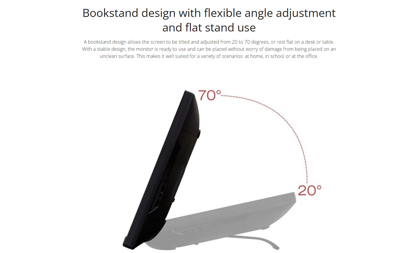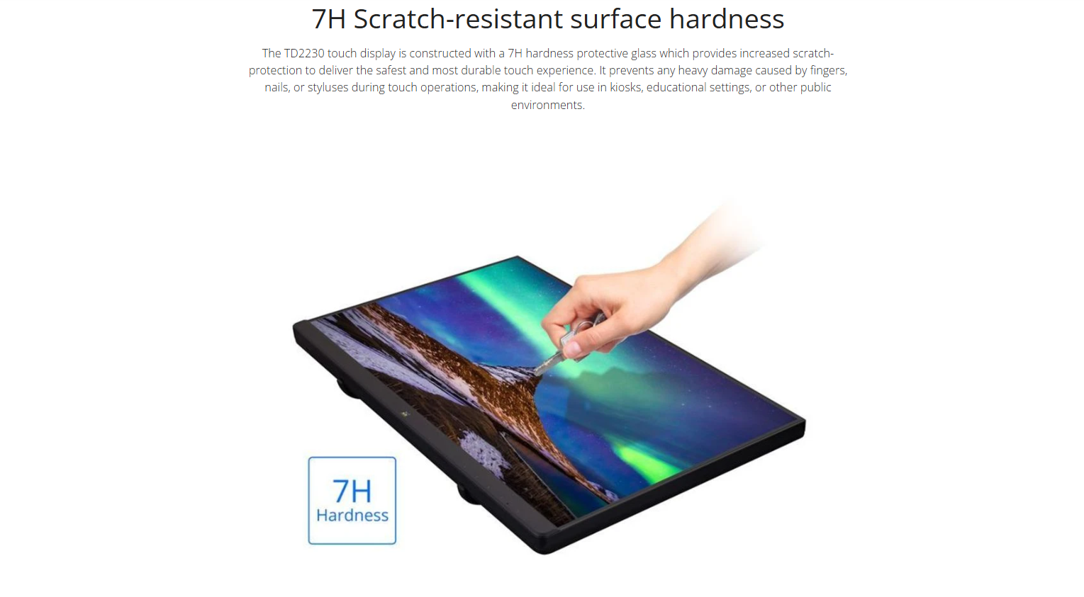 Display Size (in.): 22 Viewable Area (in.): 21.5 Panel Type: IPS Technology Resolution: 1920 x 1080 Resolution Type: FHD (Full HD) Static Contrast Ratio: 1,000:1 (typ) Dynamic Contrast Ratio: 50M:1 Light Source: LED Brightness: 200 cd/m² (typ) Colors: 16.7M Color Space Support: 8 bit (6 bit + Hi-FRC) Aspect Ratio: 16:9 Response Time (Typical GTG): 5ms Response Time (GTG w/OD): 5ms Viewing Angles: 178º horizontal, 178º vertical Backlight Life (Hours): 30000 Hrs (Min) Curvature: Flat Refresh Rate (Hz): 60 Low Blue Light: Software solution Flicker-Free: Yes Color Gamut: NTSC: 77% size (Typ) sRGB: 108% size (Typ) Pixel Size: 0.248 mm (H) x 0.248 mm (V) Touch Screen: Projected Capacitive, 10-point multi-touch Surface Treatment: Glossy, Hard Coating (7H) Cover Glass Thickness: 0.7mm