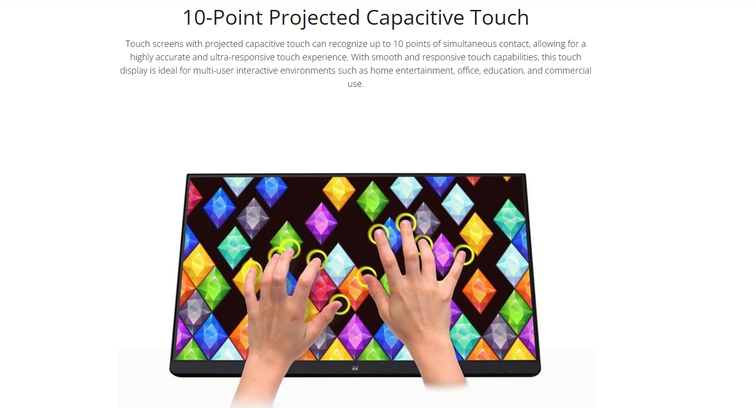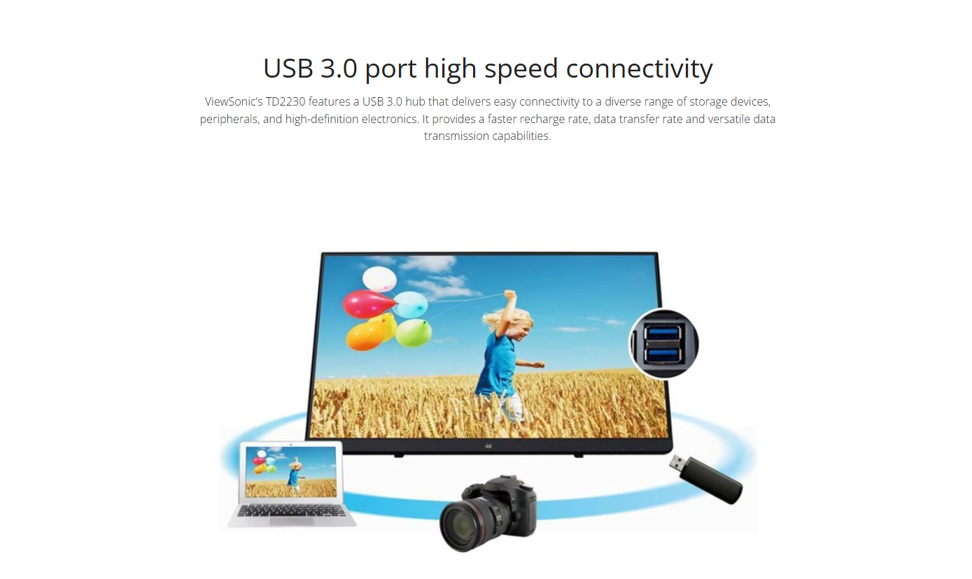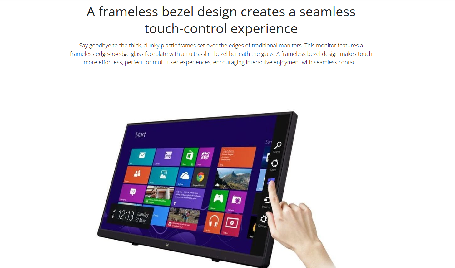 The ViewSonic® TD2230 is a 22” (21.5” viewable) Full HD touch monitor with 10-point projected capacitive touch and frameless bezel design, offering a responsive, intuitive and effortless touch experience.
