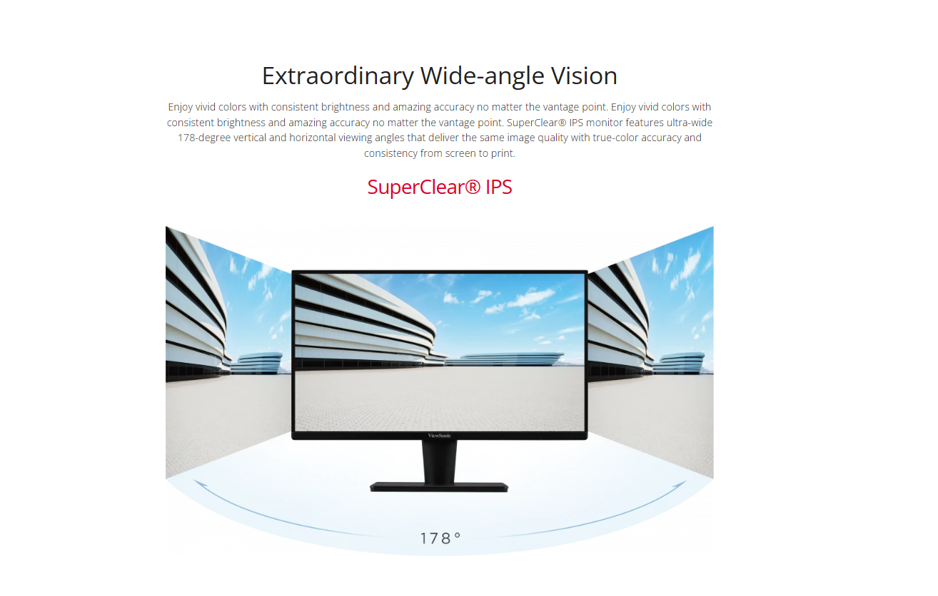 The ViewSonic VA2409-MHU is a 24” Full HD monitor featuring HDMI, VGA and USB-C inputs for business and home use. The optimal screen performance and comfortable viewing without tearing or stuttering is delivered through adaptive sync, eye-care technology, and various ViewMode presets. Simply expand your workspace and experience truly seamless, ergonomic multitasking on just one screen with a VESA-compatible mount at a low power consumption.