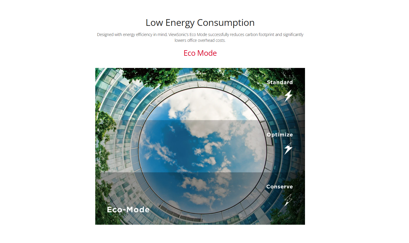 Eco Mode (Conserve): 21W Eco Mode (optimized): 26W Consumption (typical): 28W Consumption (max): 33W Voltage: AC 100-240V Stand-by: 0.5W Power Supply: External Power Adaptor