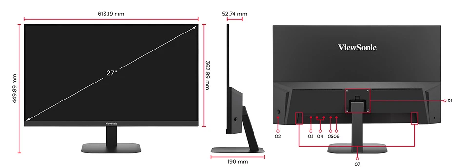 Packaging (mm): 676 x 458 x 107 Physical (mm): 613.19 x 449.89 x 190 Physical Without Stand (mm): 613.19 x 362.99 x 52.74