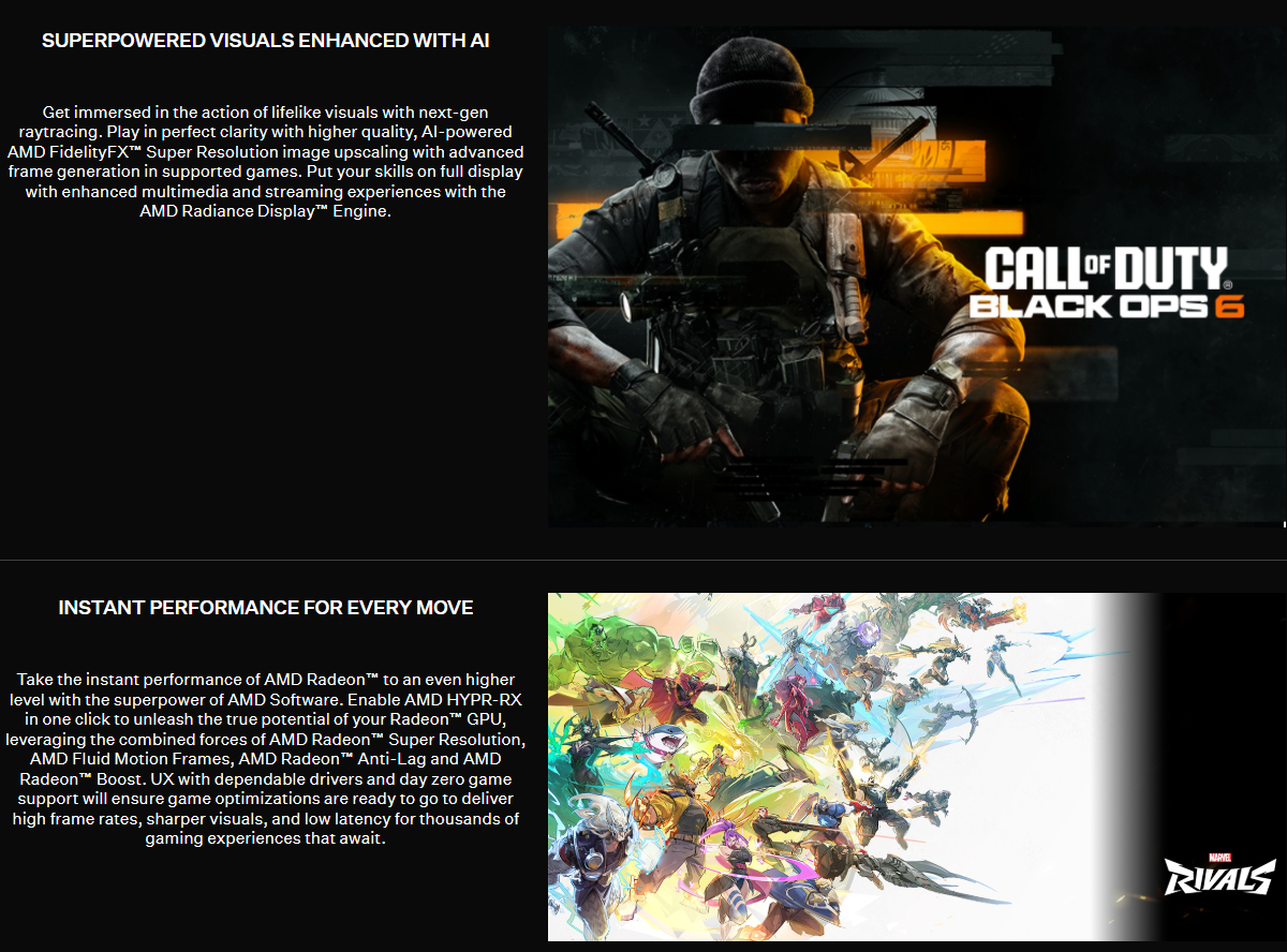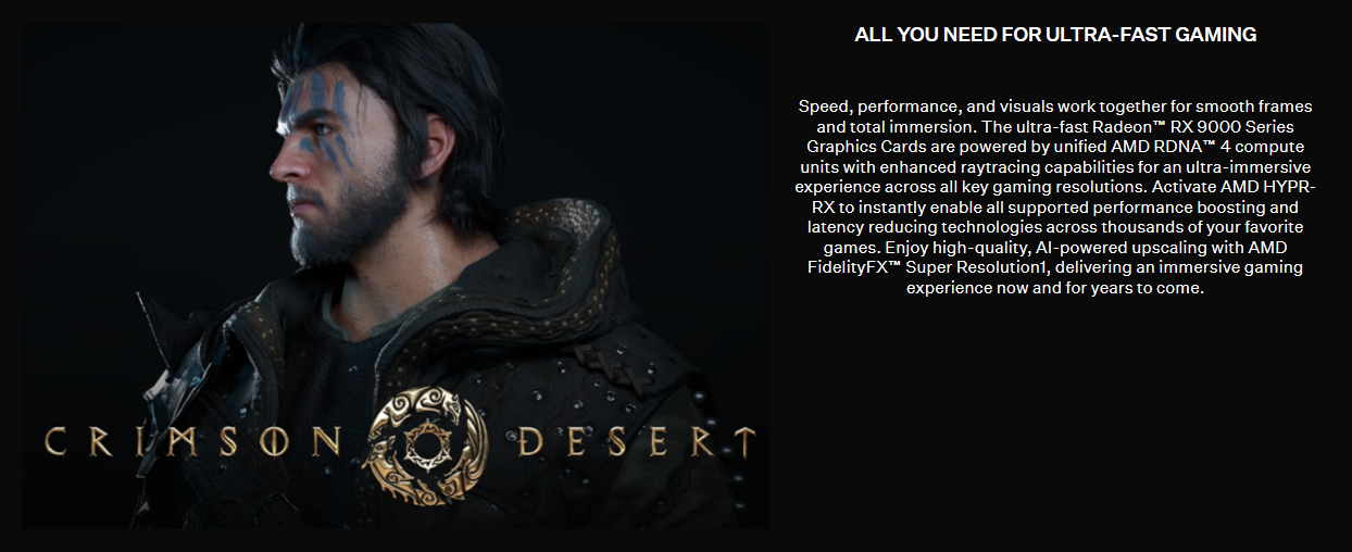 Speed, performance, and visuals work together for smooth frames and total immersion. The ultra-fast Radeon RX 9000 Series Graphics Cards are powered by unified AMD RDNA™ 4 compute units with enhanced raytracing capabilities for an ultra-immersive experience across all key gaming resolutions. Activate AMD HYPR-RX to instantly enable all supported performance boosting and latency reducing technologies across thousands of your favorite games. Enjoy high-quality, AI-powered upscaling with AMD FidelityFX™ Super Resolution 4, delivering an immersive gaming experience now and for years to come.
