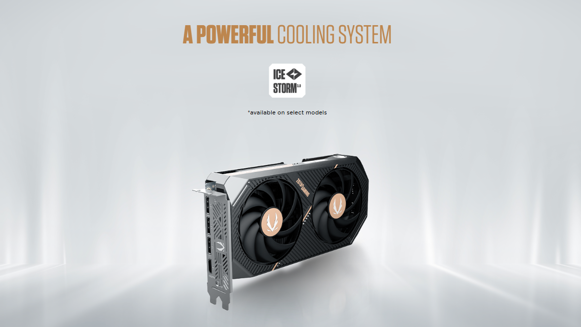 Feature Highlights: – Powered by the NVIDIA Blackwell architecture and DLSS 4 – 8-Pin PCIe power connector – SFF-Ready Graphics Card – Compact dual-fan form factor – IceStorm 2.0 Cooling – BladeLink Fans – FREEZE Fan Stop – Metal Backplate – All-new FireStorm Utility