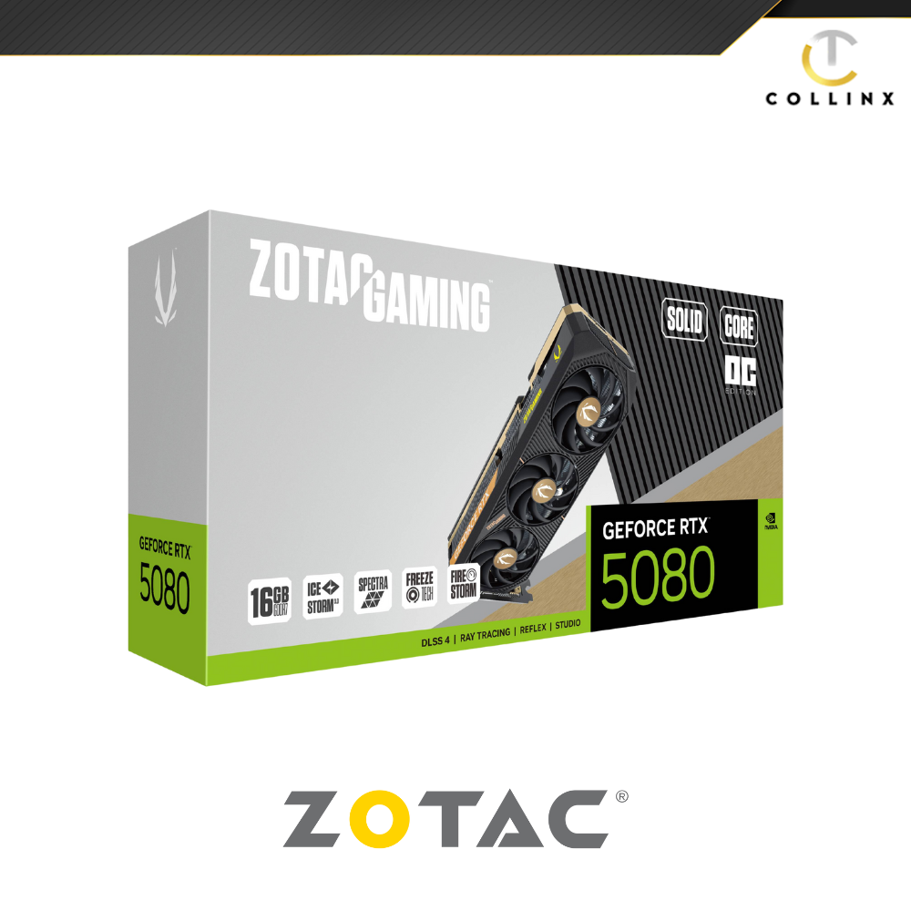 The ZOTAC GAMING GeForce RTX™ 5080 SOLID CORE OC is a high-performance graphics card that excels in both gaming and content creation with a 2.5 slot design. Featuring NVIDIA‘s cutting-edge Blackwell architecture and DLSS4, and structural enhancements like an all-metal mid-frame, the SOLID CORE OC is the perfect blend of high performance and build flexibility.